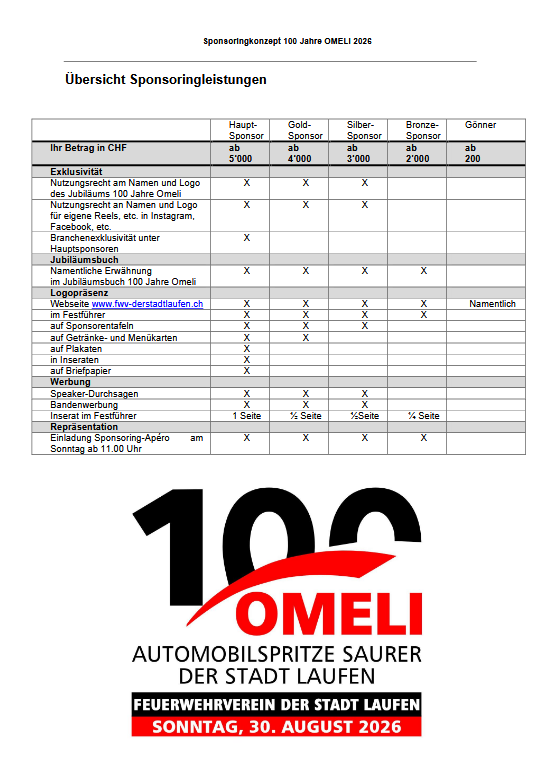 Buchungsformular Sponsoring 100 Jahre Omeli 2026 in Laufen