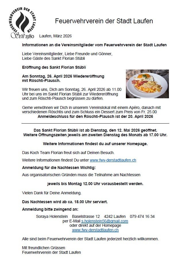 Sonntag 26. April 2026 Beginn 11.00 Uhr